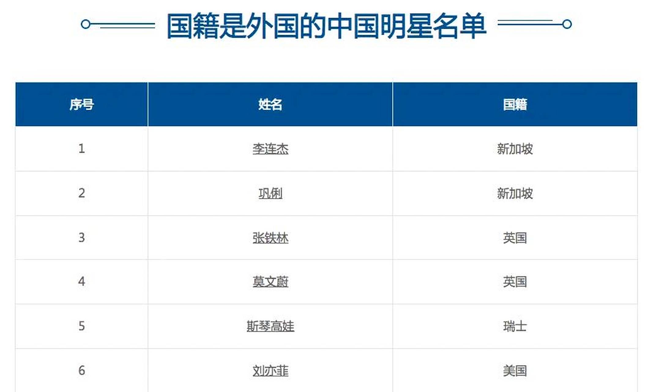 2. 中國明星國籍一覽表