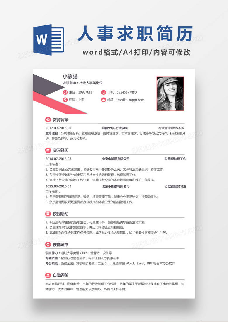 個(gè)人簡(jiǎn)歷模板(Word格式)介紹