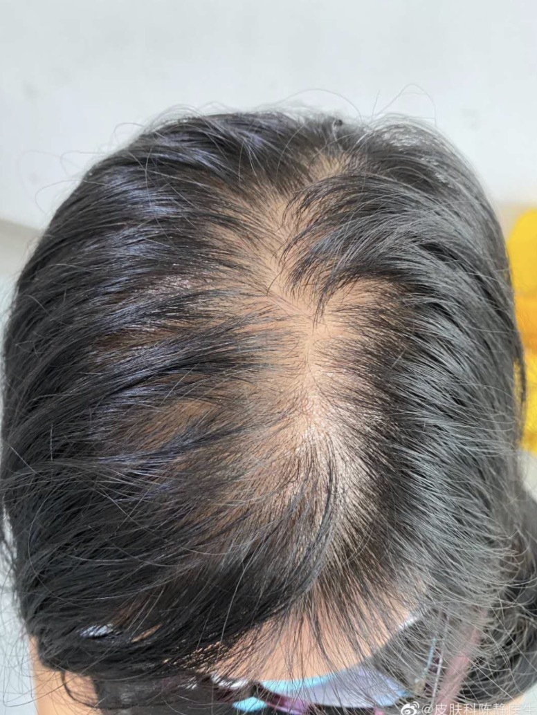 2、頭發(fā)稀疏:隨著時間的推移,脫發(fā)區(qū)域頭發(fā)逐漸稀疏,甚至可能出現(xiàn)局部禿斑。