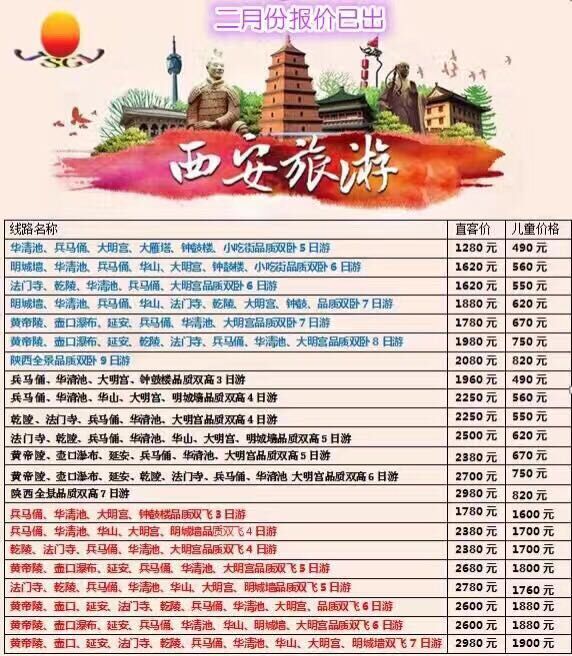 不同的旅行社提供的報(bào)價(jià)會(huì)有所不同,西安二日游旅行社報(bào)價(jià)包括交通、住宿、餐飲和門票等費(fèi)用,在選擇旅行社時(shí),請(qǐng)務(wù)必選擇正規(guī)、信譽(yù)良好的旅行社,以確保行程的安全和順利。