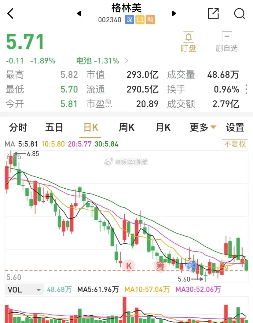 格林美股票行情分析