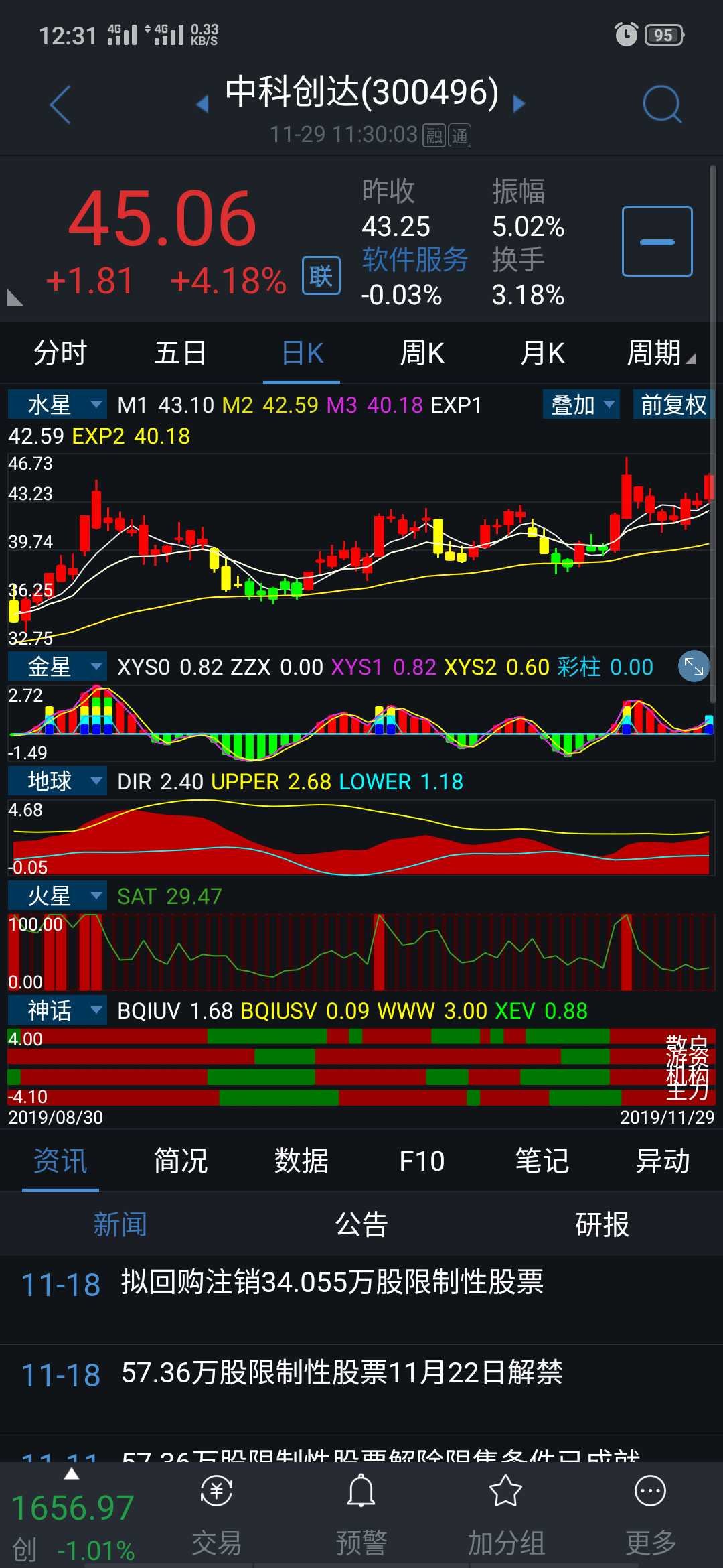 在技術(shù)面方面,我們將從股票的走勢(shì)圖、交易量、技術(shù)指標(biāo)等方面進(jìn)行分析,300496股票的走勢(shì)圖呈現(xiàn)出良好的上升趨勢(shì),表明市場(chǎng)對(duì)該股具有較高的信心,交易量保持穩(wěn)定增長(zhǎng),表明市場(chǎng)參與者較多,股票流動(dòng)性較好,技術(shù)指標(biāo)方面,該股的市盈率、市凈率等指標(biāo)均表現(xiàn)良好,具有一定的投資價(jià)值。