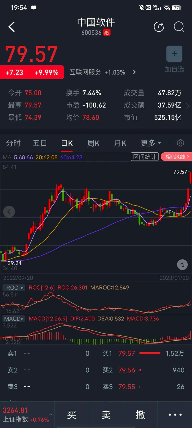2. 中國(guó)軟件股票行情分析